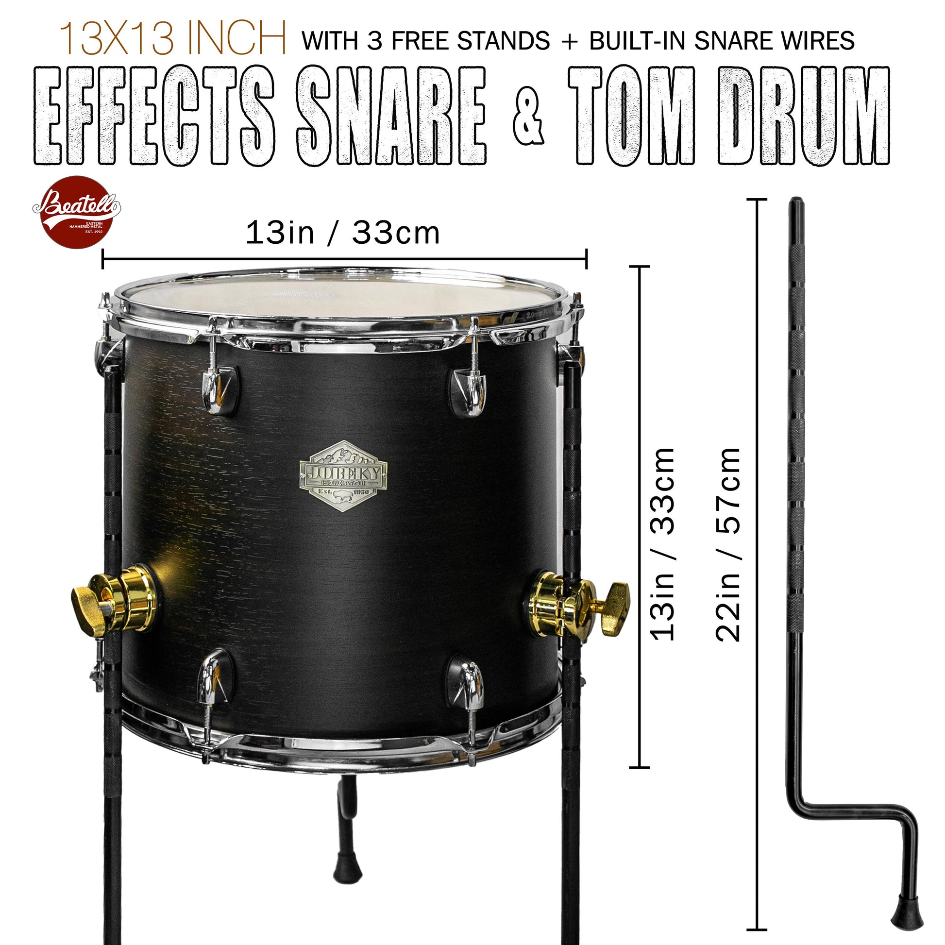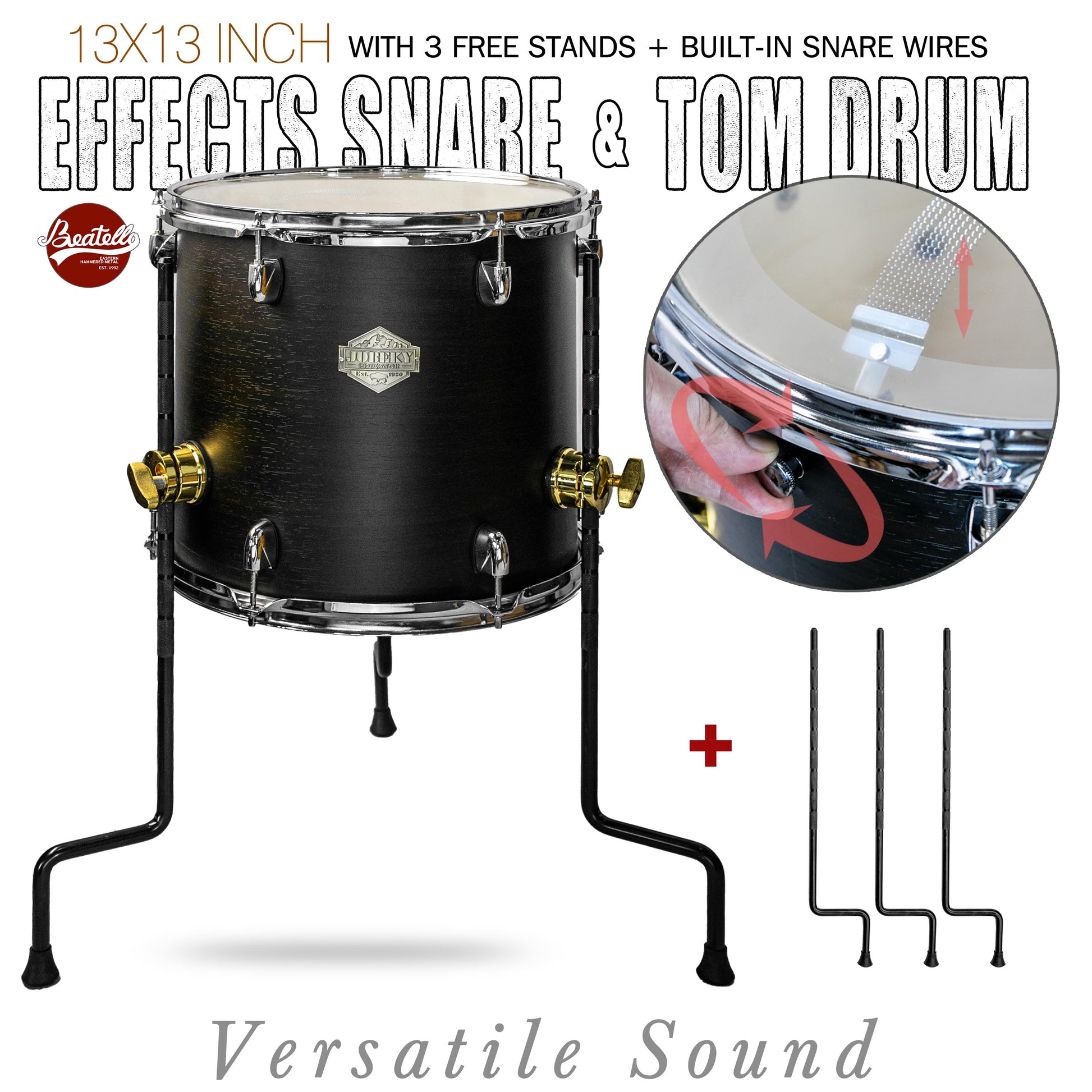 Unique Size, Powerful Sound: The non-standard 13×13-inch size delivers deeper, more impactful low-end than a traditional snare drum. It maintains a clear, crisp snare sound while producing a powerful resonance, making it ideal for creating special rhythm patterns or as a lead snare drum.