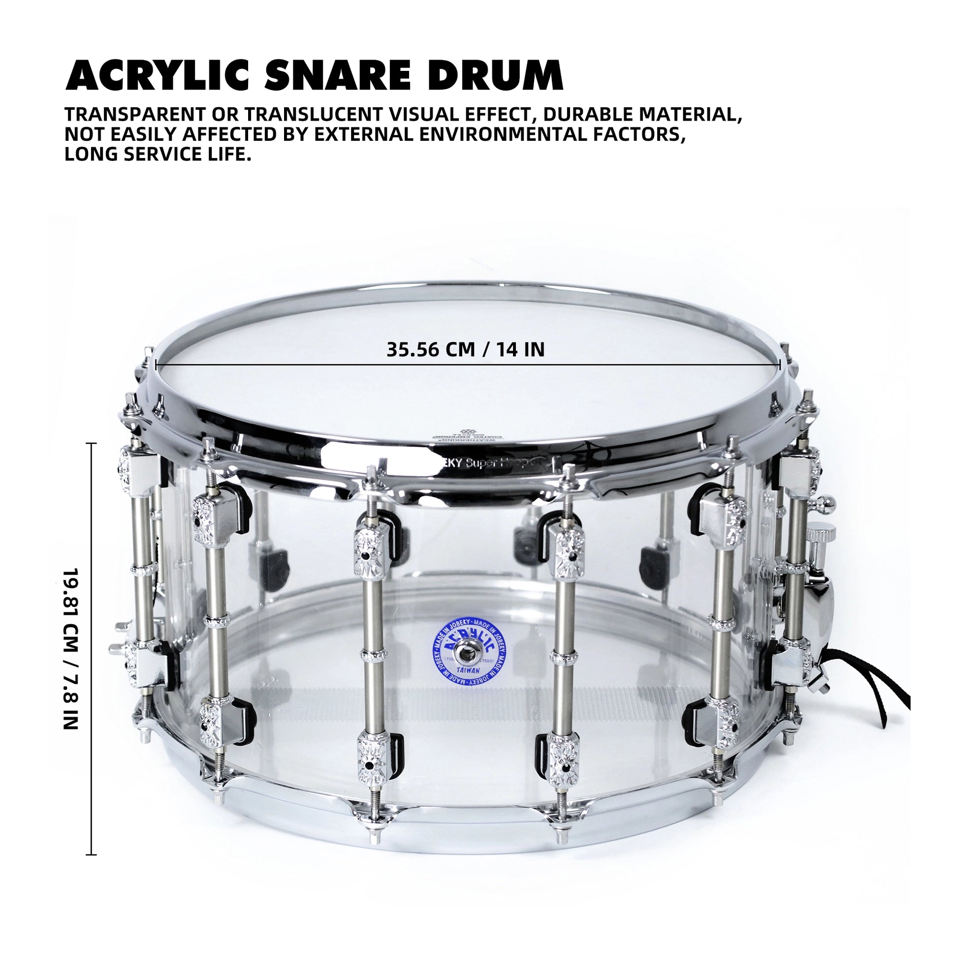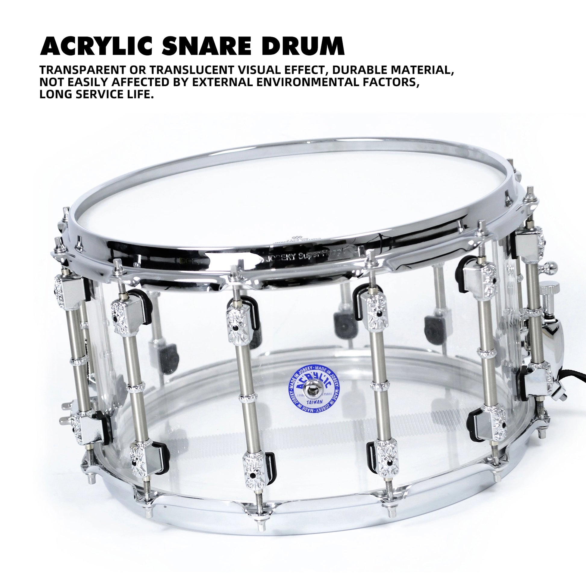 This 14-inch acrylic snare drum delivers a distinctive tone. The acrylic drum cavity contributes to a bright and cutting-through sound. With 12 pieces of drum lugs, it ensures a well-tuned and resonant performance. Whether in a rock, jazz, or pop setting, it can produce a crisp and articulate sound that adds character to your drum set.