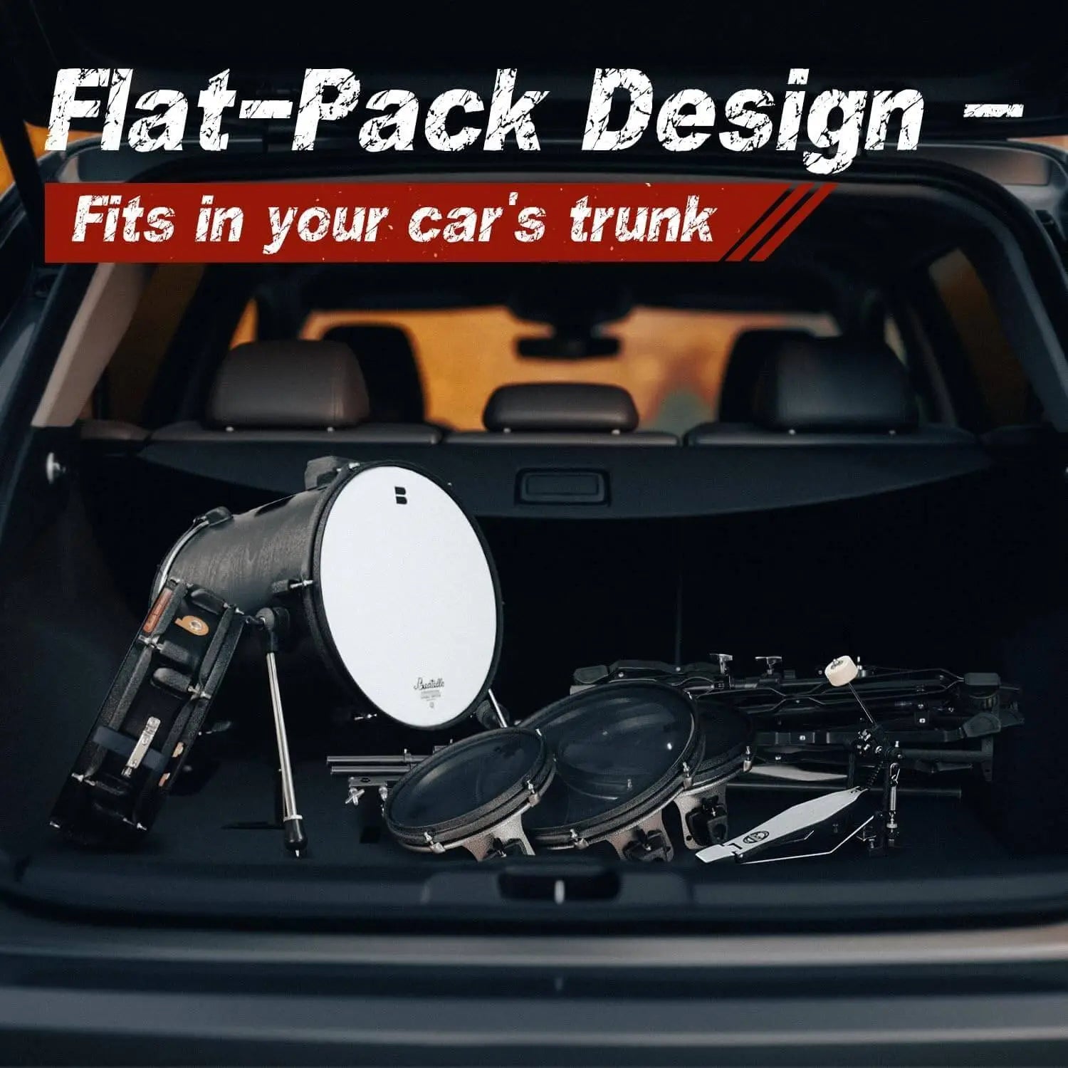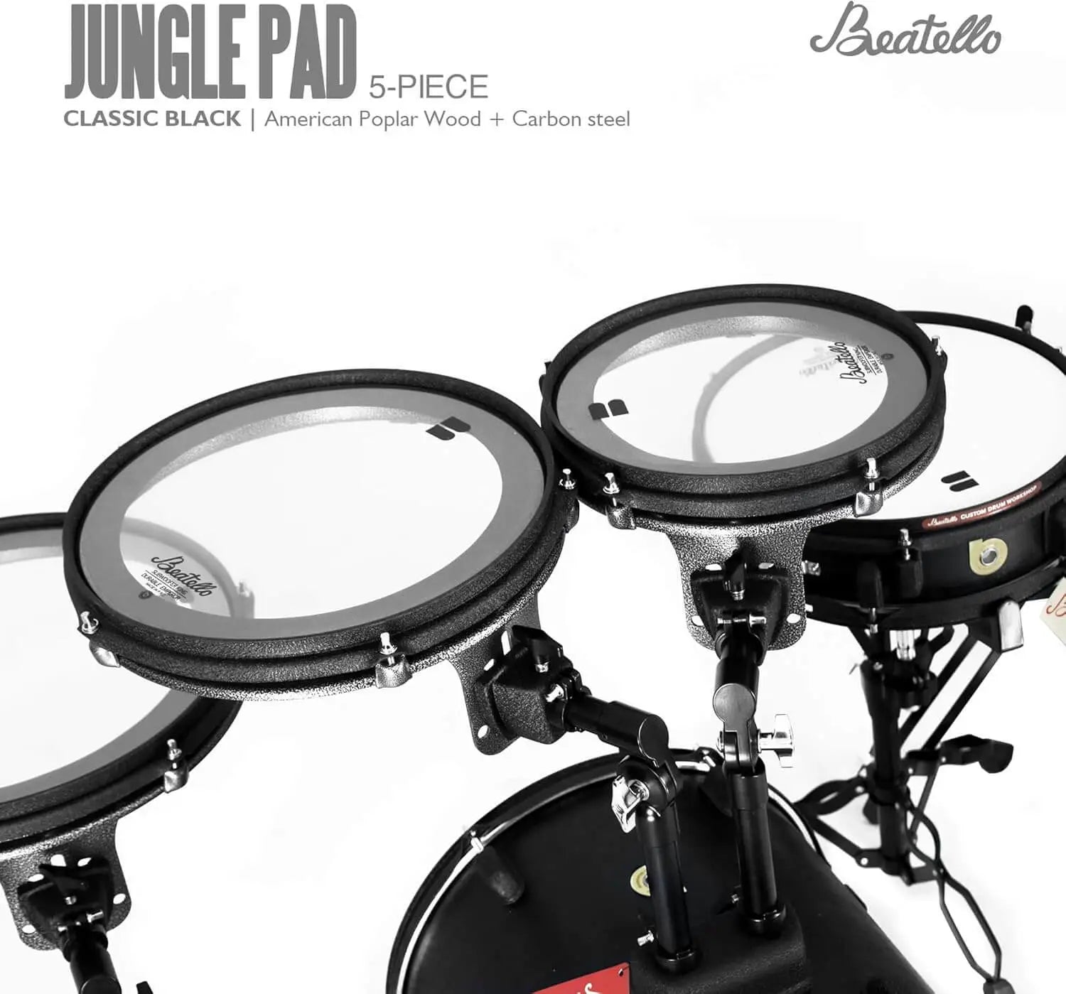 Crafted for drummers who refuse to compromise, The Jungle Pad brings you a pro-level drum set that travels with ease. Whether you're teaching at school, performing in the street, or gigging on a small stage, this kit delivers authentic acoustic resonance packed in a portable, flat-pack design. Each drum shell features a single 1.5-inch ultra-thin drum head, engineered to produce a rich, balanced tone—deep bass, crisp toms, and snappy snares, all in one lightweight setup. Its compact form easily fits into your car’s trunk, making mobile rehearsals and venue hopping a breeze. But don't let the size fool you—this is a serious drum set. We’ve engineered the bass drum to support double kick pedals, giving metal and rock drummers full dynamic freedom in even the tightest spaces. Ideal for drummers on the move who demand professional quality in a portable cage.
