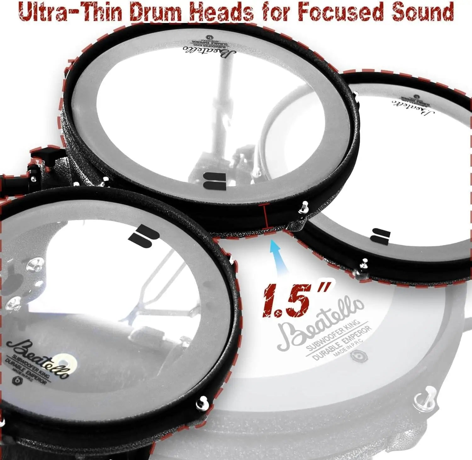 - 10″ × 1.5″, 12"× 1.5" , 14"× 1.5" tom