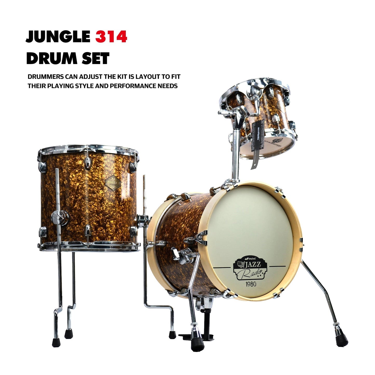 The imported celluloid exterior not only gives the drum set a sleek, professional look but also protects the shells from scratches and wear. Its eye-catching design ensures the Jungle Drums stands out on any stage while offering long-lasting durability.