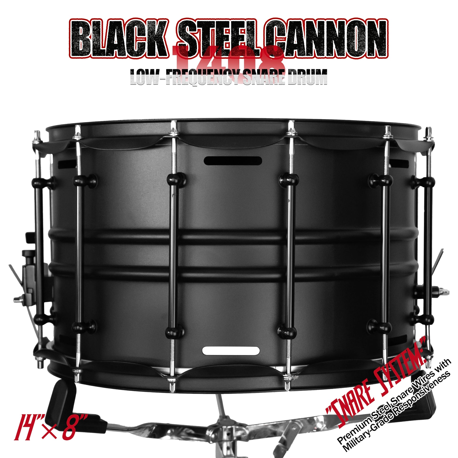 Black Steel Cannon-1408 Snare Drum